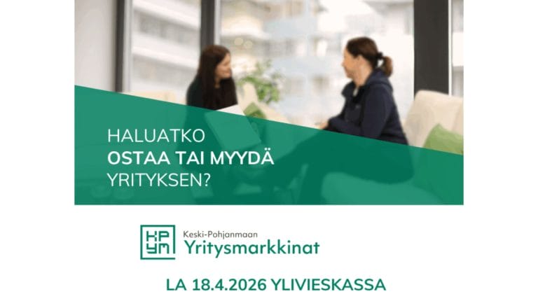Keski-Pohjanmaan Yritysmarkkinat: Kohtauspaikka yrityksen ostajille ja myyjille – luottamuksellisesti Ylivieskassa keväällä 2026